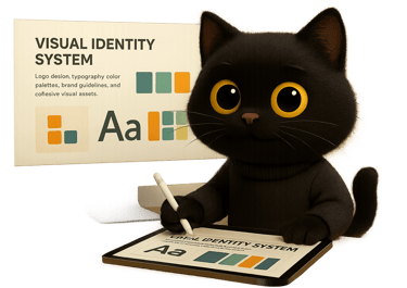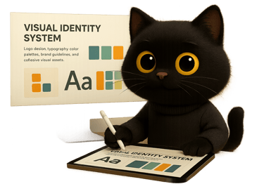 Logo design, typography, color palettes, brand guidelines, and cohesive visual assets.