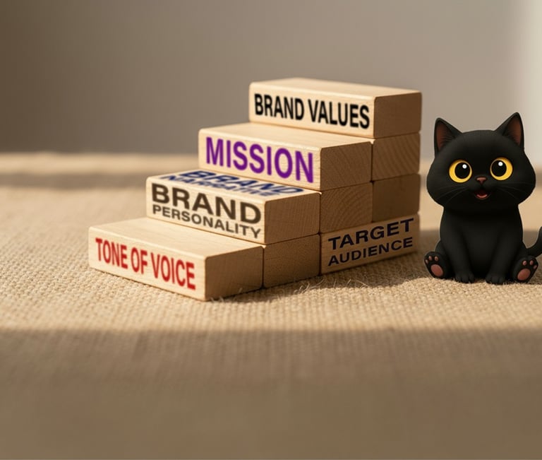 Clarifying core brand values, mission, Tone of voice, target audience, and competitive positioning.