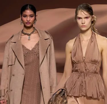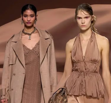 Designers are embracing Mocha Mousse for its ability to create cozy, sophisticated spaces. Whether through wall colours, upholstery, or decorative accents, this hue works beautifully to anchor a room. Pairing it with terracotta planters, moss green cushions, or muted gold light fixtures elevates the overall aesthetic.In Fashion: