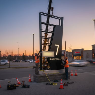 We design and build custom signage that works in the real world, not just on screen. Every project starts with understanding your brand, your location, and how people will see and interact with the sign. Our goal is to create signage that is clear, readable, and built to last. We consider materials, scale, placement, and lighting from the beginning, so the final result looks strong during the day and still performs at night. Whether it’s a pylon sign, storefront signage, or a full wayfinding system, everything is designed with purpose.We handle the full process, from concept and design to production and installation. You’ll see accurate mockups before anything goes into print, so there are no surprises.In the end, the signage does more than show your name. It helps people find you, builds trust, and gives your business a solid presence in its environment.