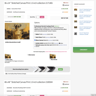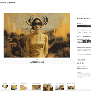 When browsing our store, you'll notice that each artwork offers various media, sizes, and finishes.